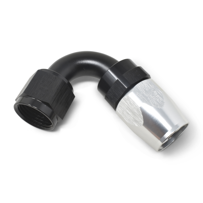 Russell Performance -8 AN Black/Silver 120 Degree Tight Radius Full Flow Swivel Hose End