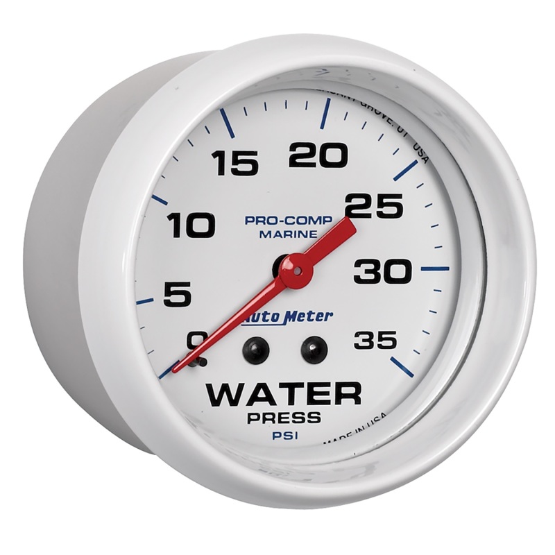 Autometer AutoGage 2-5/8in. / 35 PSI Mechanical Water Press Gauge - Marine White