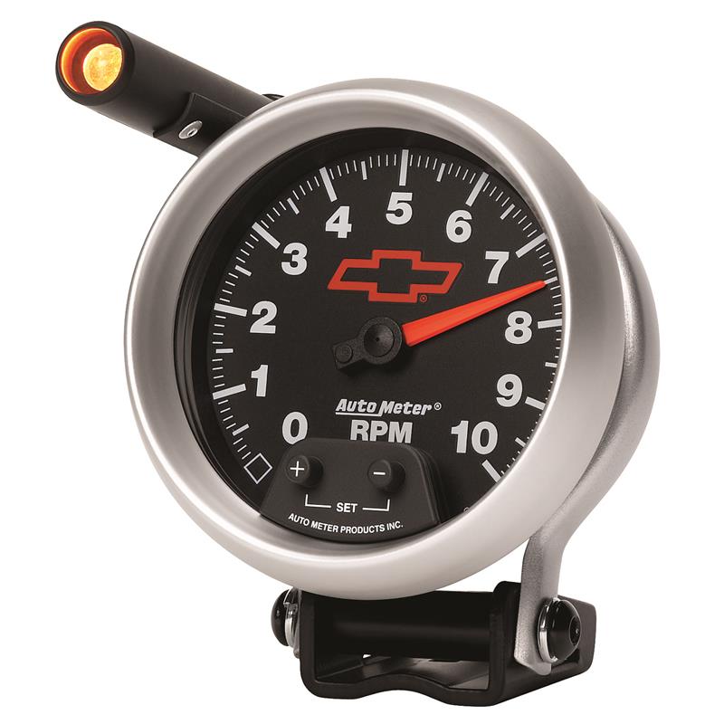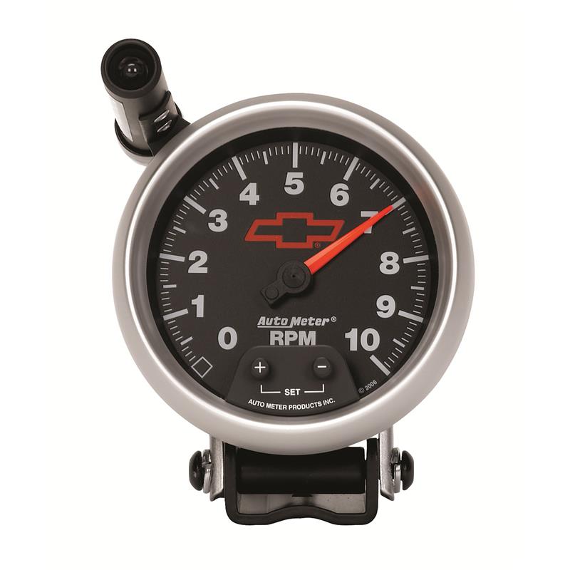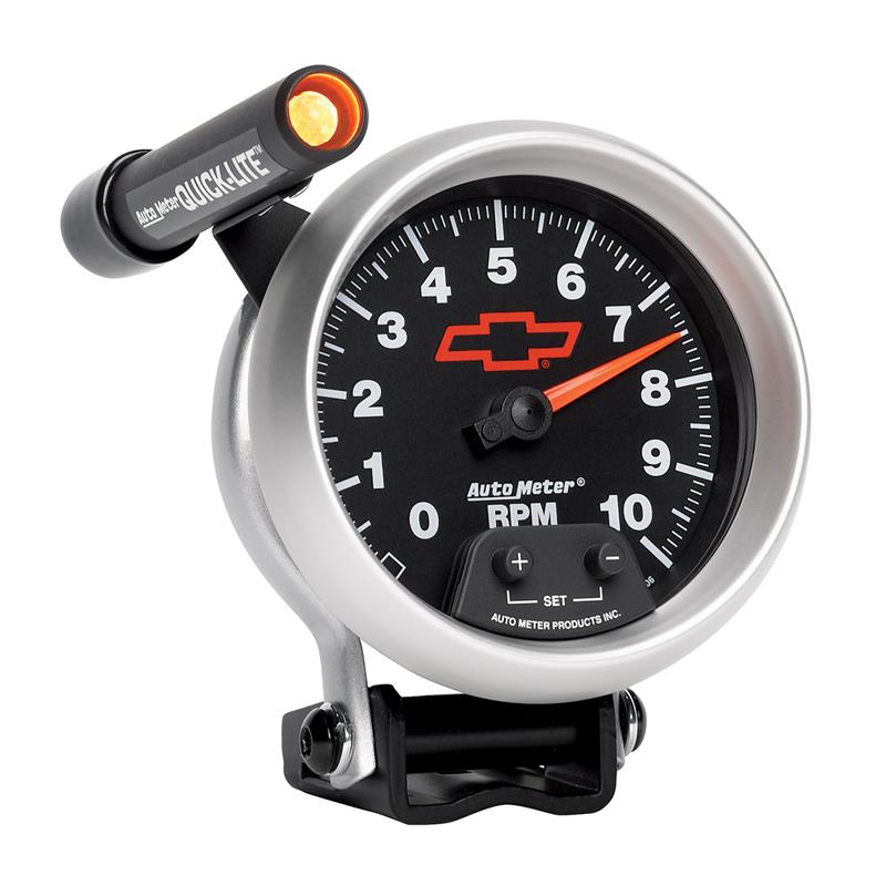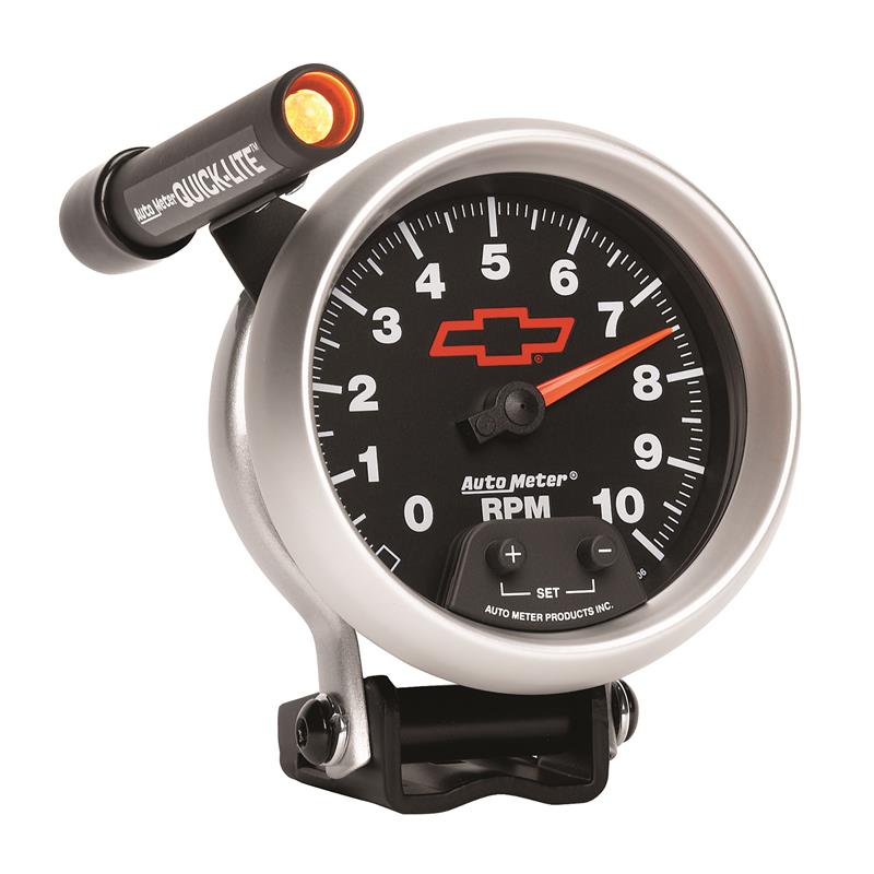 Autometer GM Red Bowtie Black 3-3/4in 0-10000 RPM Pedestal Mount Tachometer Quick-Lite