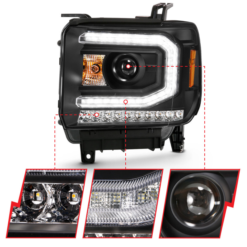 ANZO 2016-2019 GMC Sierra 1500 Projector Headlight Plank Style Black w/ Sequential Amber Signal