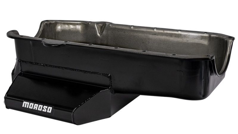 Moroso 86-Up Chevrolet SBC (w/1 Pc Seal & Low Clearance) Wet Sump 7qt 7in Steel Oil Pan - Black