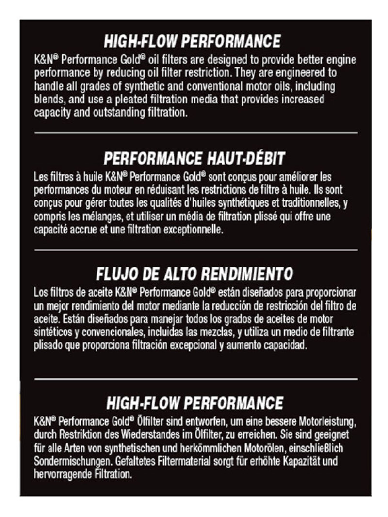K&N Performance Oil Filter - 14-18 Fiat 500L 1.4L L4 Gas