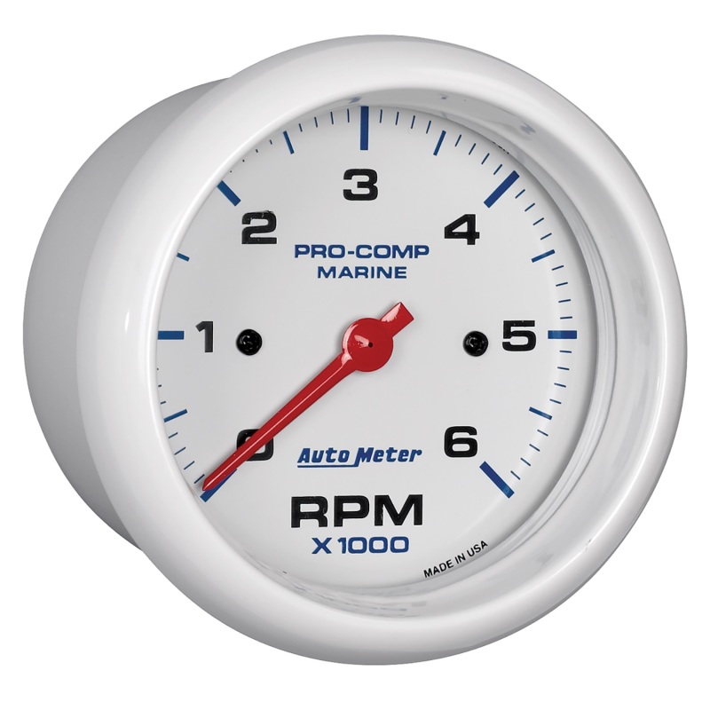 Autometer Marine White Ultra-Lite Gauge 3-3/8in Tachometer 6K RPM