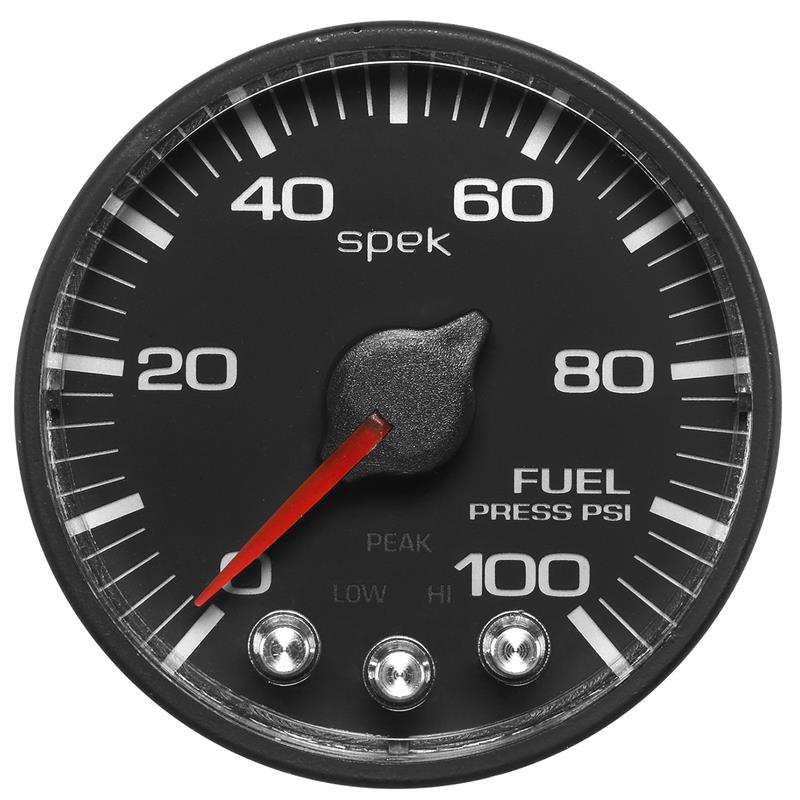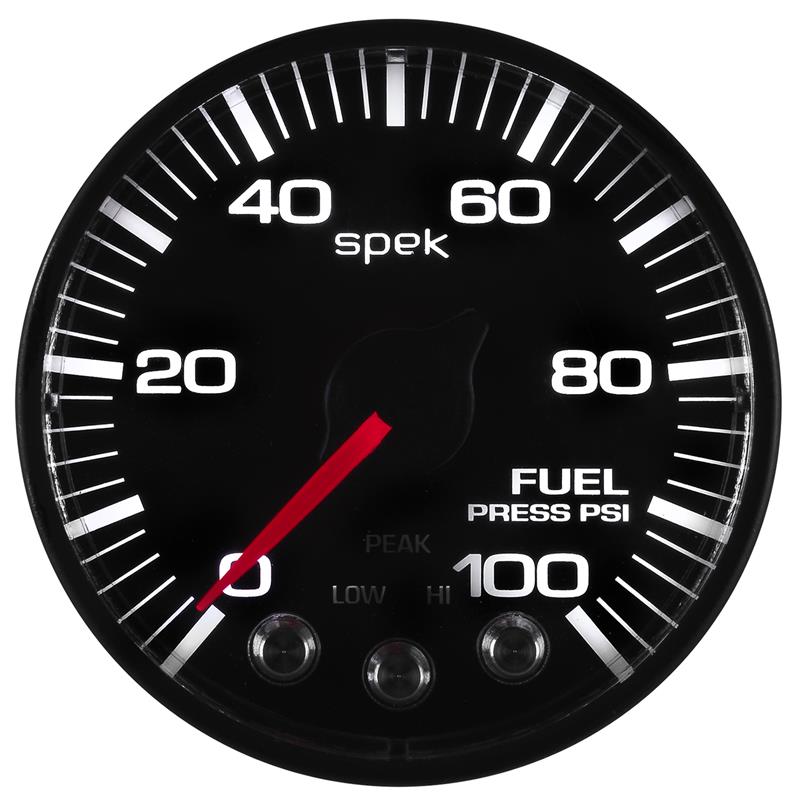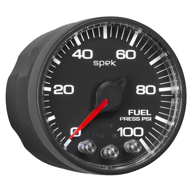 Autometer Spek-Pro Gauge Fuel Press 2 1/16in 100psi Stepper Motor W/Peak & Warn Blk/Blk