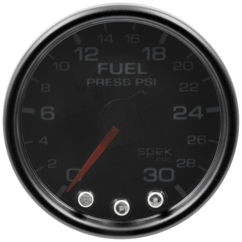 Autometer Spek-Pro Gauge Fuel Press 2 1/16in 30psi Stepper Motor W/Peak & Warn Blk/Smoke/Blk
