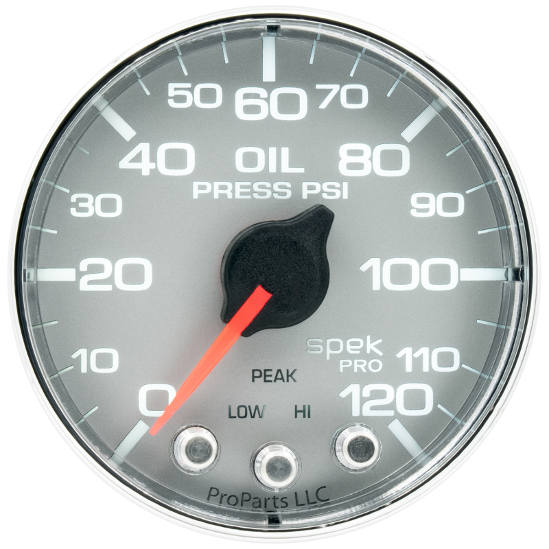 Autometer Spek-Pro Gauge Oil Press 2 1/16in 120psi Stepper Motor W/Peak & Warn Slvr/Chrm