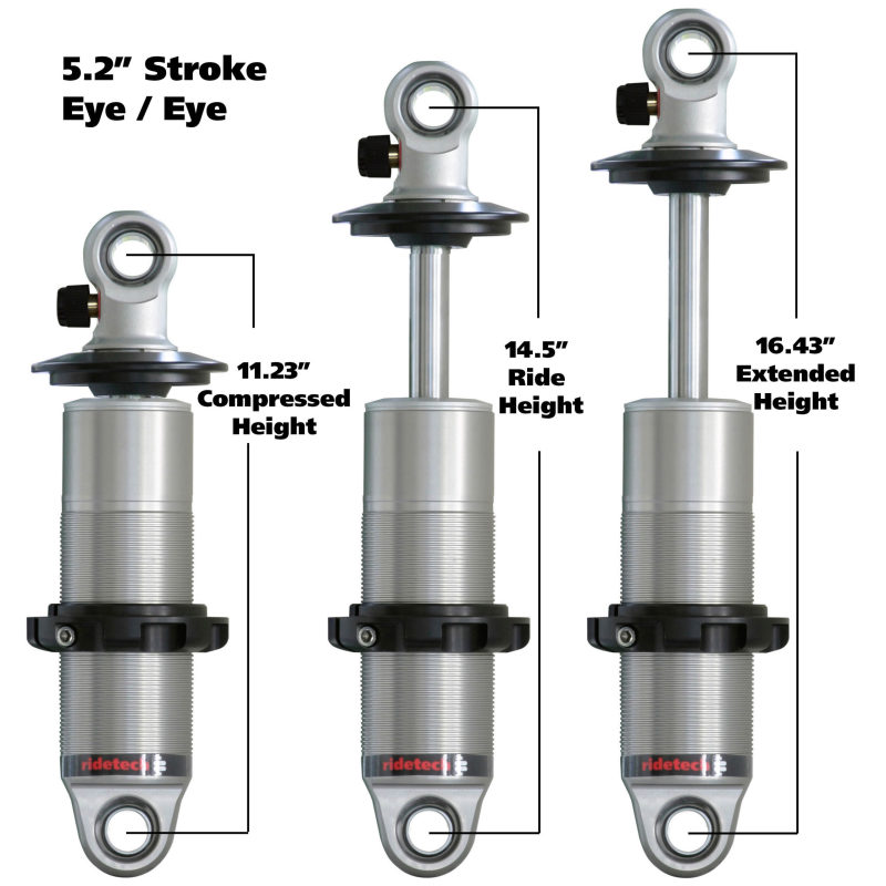 Ridetech HQ Series CoilOver Shock 5.2in Travel 2.5in Coil Eye/Eye Mounting 11.225inx16.425in