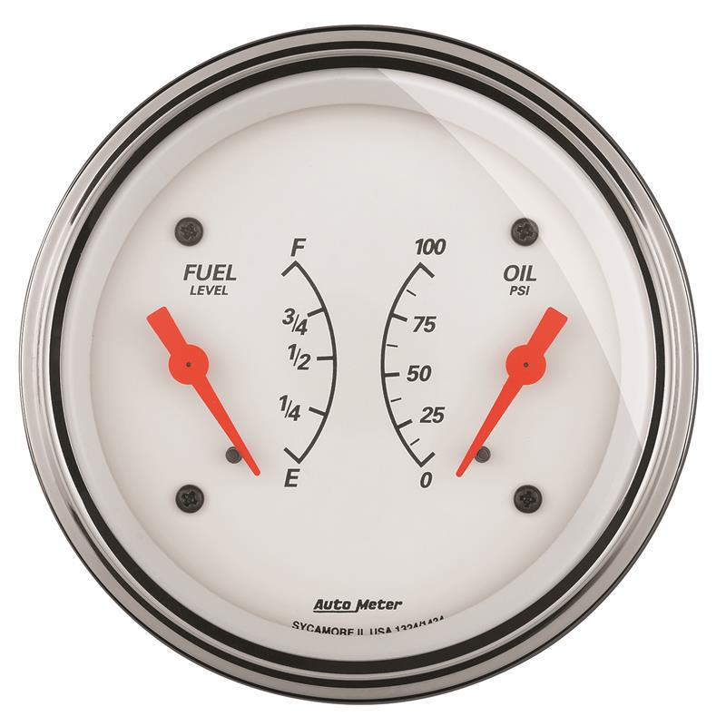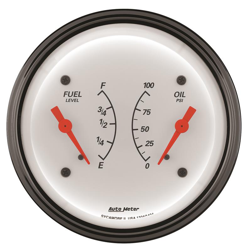 AutoMeter Gauge Dual Fuel & Oilp 3-3/8in. 0 Ohm(e) to 90 Ohm(f)& 100PSI Elec Arctic White