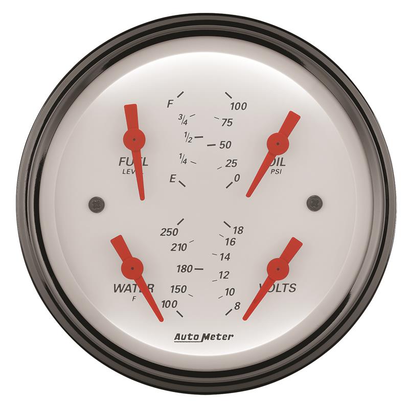 AutoMeter Gauge Quad 3-3/8in. 0 Ohm(e) to 90 Ohm(f)Elec Arctic White