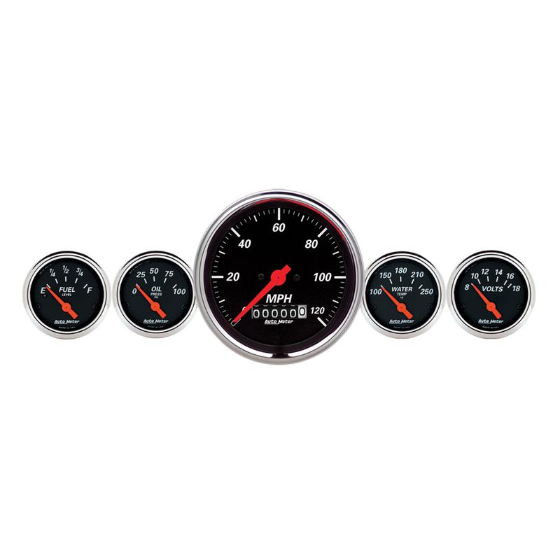 AutoMeter Gauge Kit 5 Pc. 3-3/8in. & 2-1/16in. Elec. Speedometer Designer Black