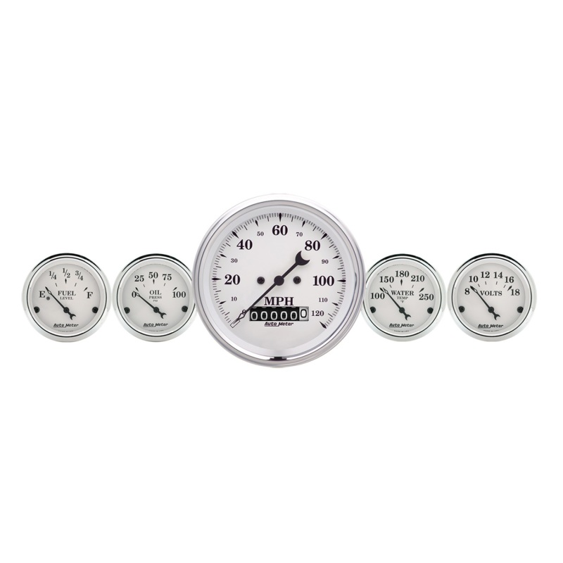 AutoMeter Gauge Kit 5 Pc. 3-3/8in. & 2-1/16in. Elec. Speedometer Old Tyme White