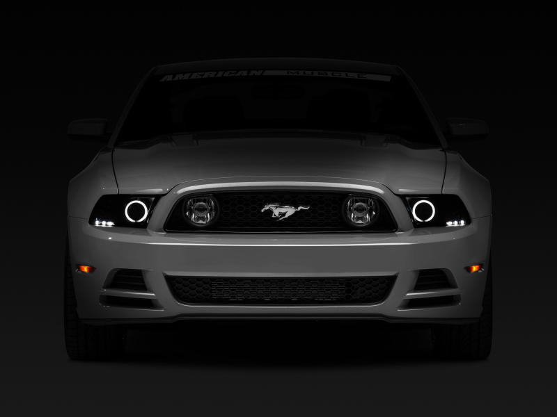Raxiom 13-14 Ford Mustang w/ Factory HIDLED Halo Projector Headlights- Black Housing (Smoked Lens)