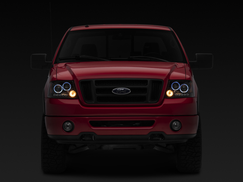 Raxiom 04-08 Ford F-150 Dual LED Halo Projector Headlights- Black Housing (Clear Lens)
