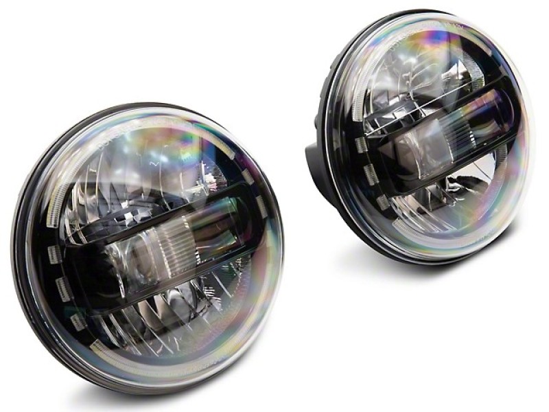 Raxiom 97-18 Jeep Wrangler TJ/JK Axial 7-Inch LED Headlights w/ DRL- Black Housing (Clear Lens)