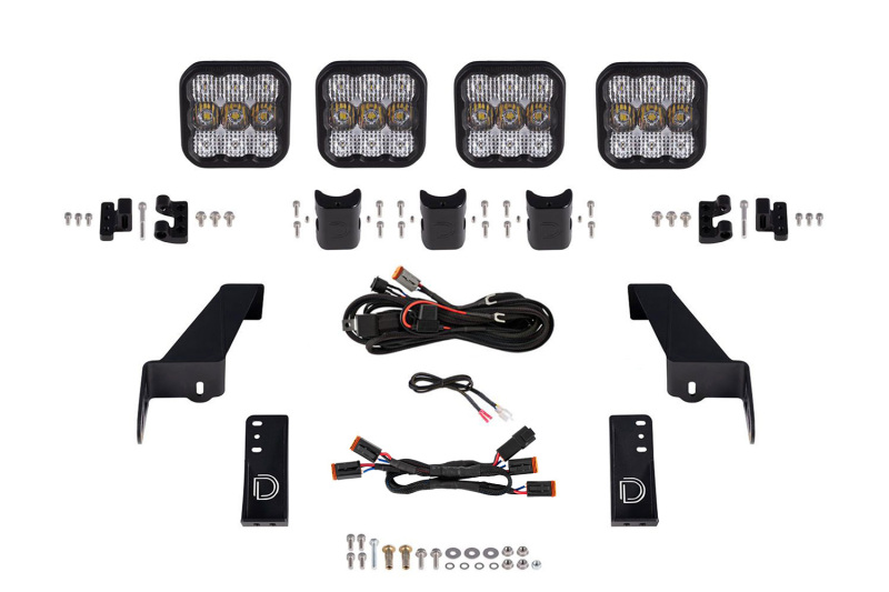 Diode Dynamics Jeep JL SS5 4-Pod CrossLink Grille Lightbar Kit Pro - White Combo