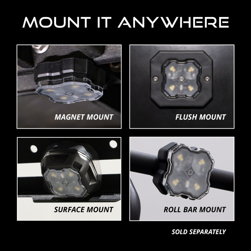 Diode Dynamics Stage Series SXS Rock Light Installer Kit - White Diffused M8 (4-pack)