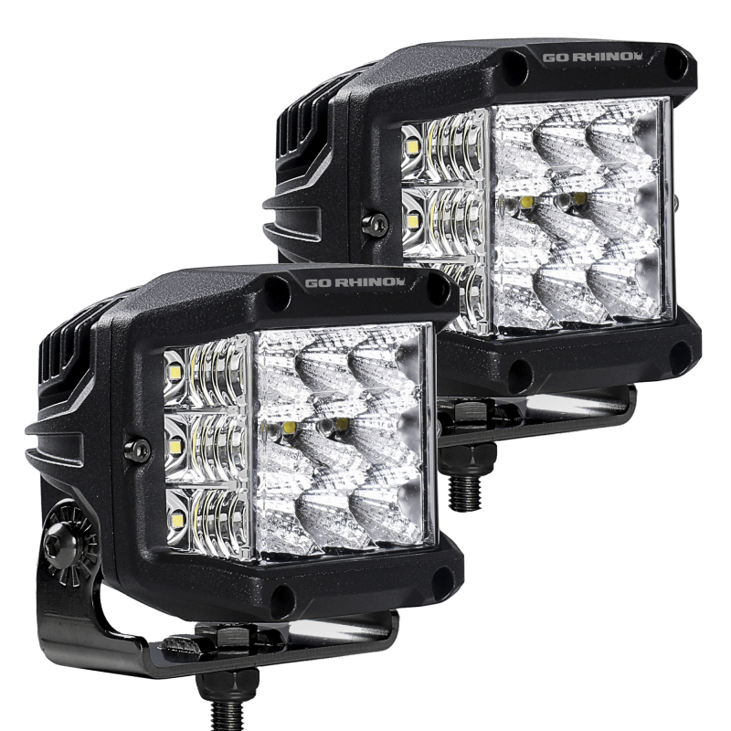 Go Rhino Xplor Bright Series Sideline Cube LED Flood Light Kit (Surface Mount) 4x3 - Blk (Pair)