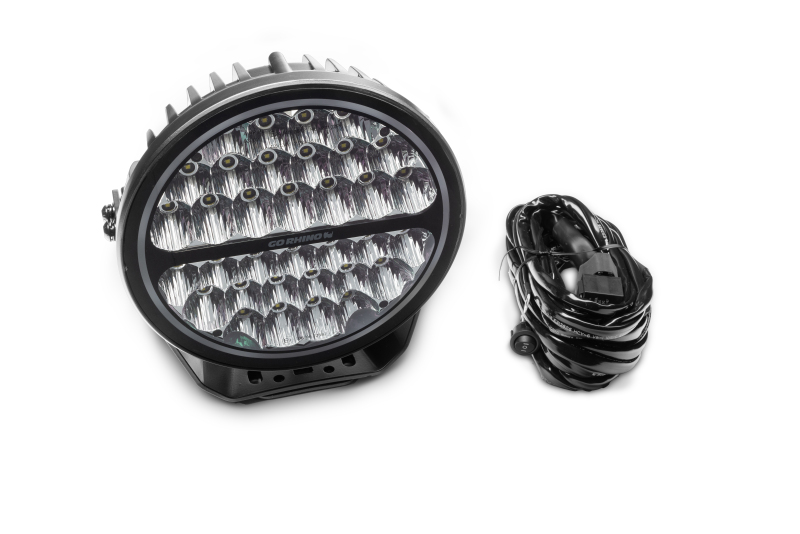 Go Rhino Xplor Blackout Series Round LED Sgl Driving Kit w/DRL (Surface/Thread Stud Mnt) 9in. - Blk