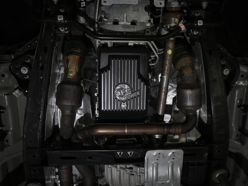 aFe 17-24 Ford F-150 10R60/10R80 Pro Series Rear Transmission Pan Black w/ Machined Fins