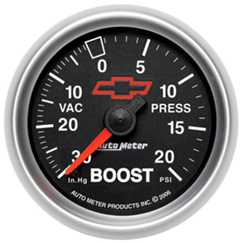 Autometer GM Bowtie Black 2-1/16in Boost/Vacuum 30in HG - 20 PSI Mechanical
