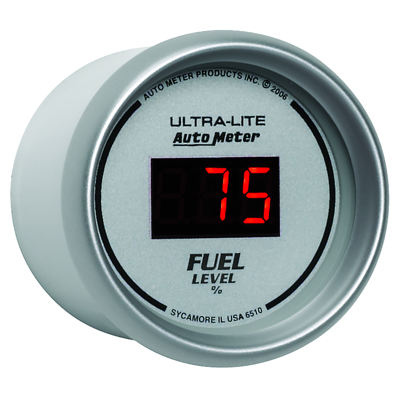 Autometer Ultra-Lite Digital 2-1/16in 0-280 OHM Silver Dial w/ Red LED Programmable Fuel Level Gage