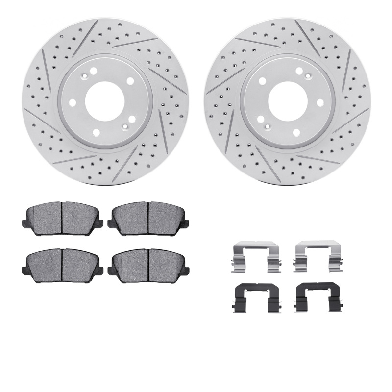 R1 14-18 Kia Forte Koup Front Drill/Slot Carbon Coated Rotor Set w/Optimum Pads