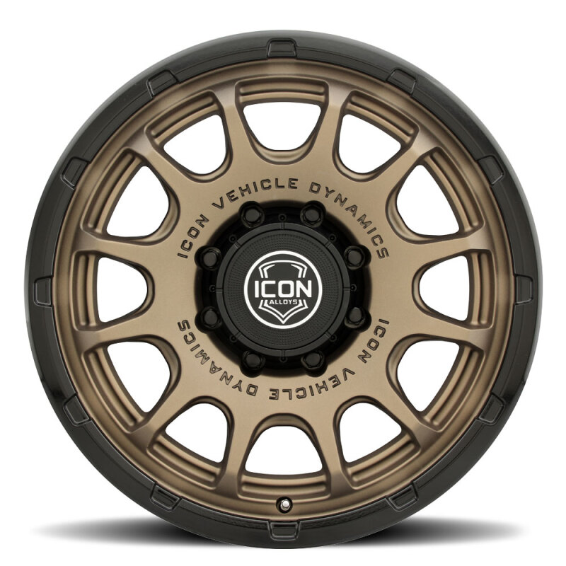 ICON Alloys Rancho 20x9 / 8x6.5 / 12mm / 5.5in BS Satin Bronze Wheel w/ Gloss Black Lip
