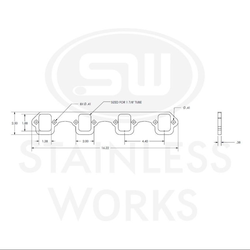 Stainless Works SBF Rectangular Shaped Port Header 304SS Exhaust Flanges 1-7/8in Primaries (2in BP)