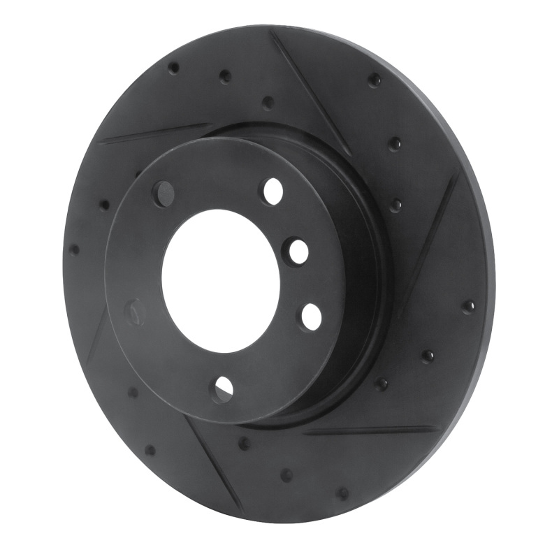 R1 95-98 BMW 318TI Front Right Drilled & Slotted Black Brake Rotor
