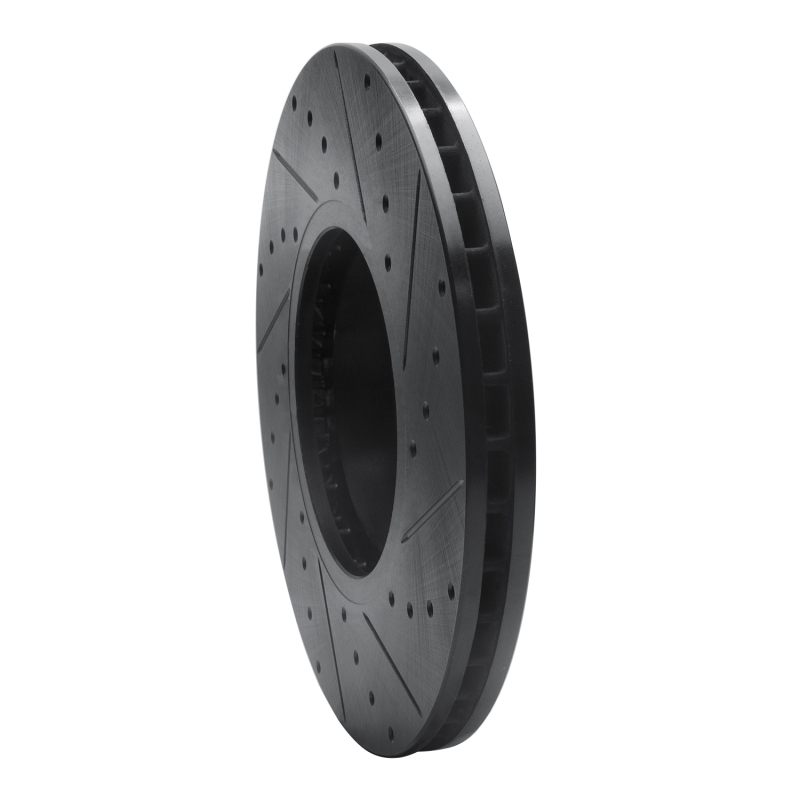 R1 07-18 BMW X5 Front Left Drilled & Slotted Black Brake Rotor