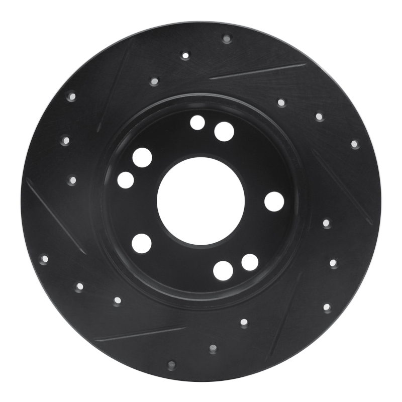 R1 83-89 Mercedes-Benz 190E Front Right Drilled & Slotted Black Brake Rotor