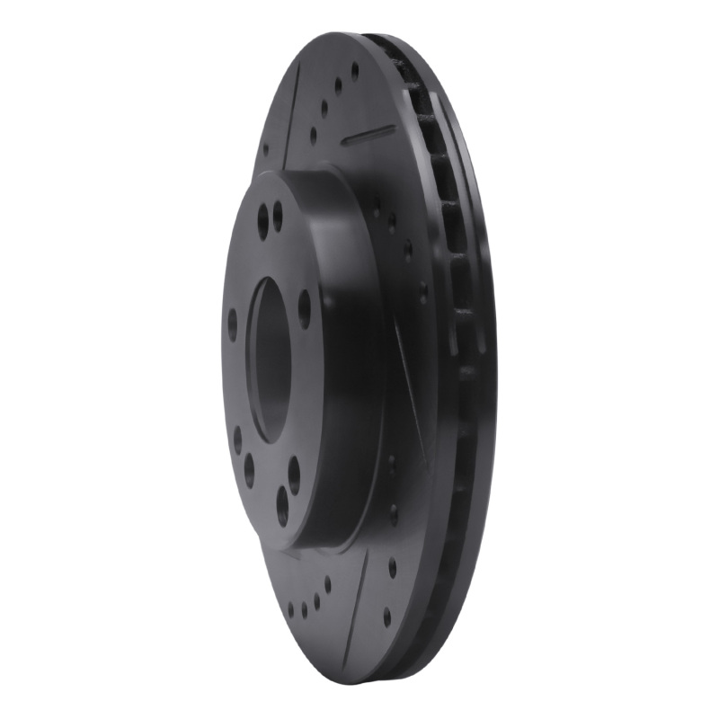 R1 87-93 Mercedes-Benz 190E Front Left Drilled & Slotted Black Brake Rotor