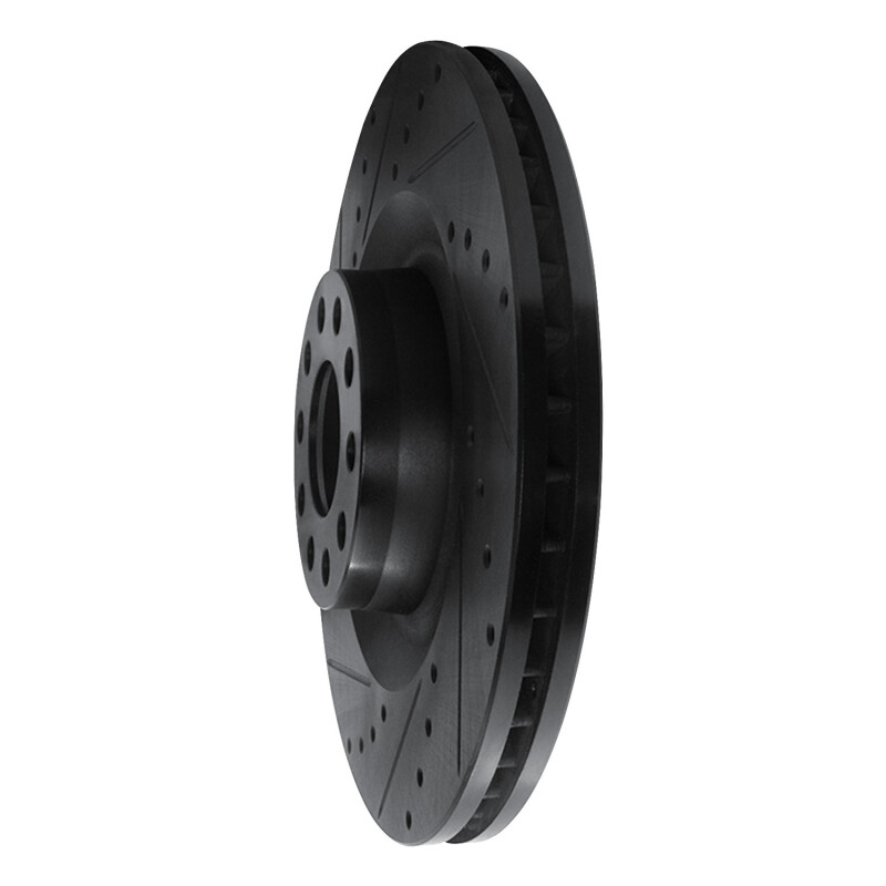 R1 01-03 Audi S8 Front Left Drilled & Slotted Black Brake Rotor