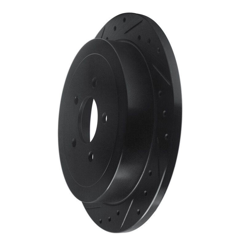R1 03-11 Lincoln Town Car Rear Left Drilled & Slotted Black Brake Rotor