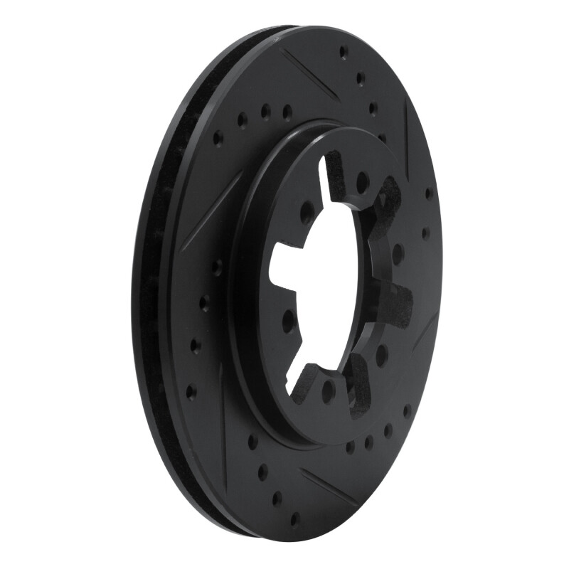 R1 85-97 Nissan D21 Pickup RWD (4 Cyl Excl HD) Front Right Drilled & Slotted Black Brake Rotor