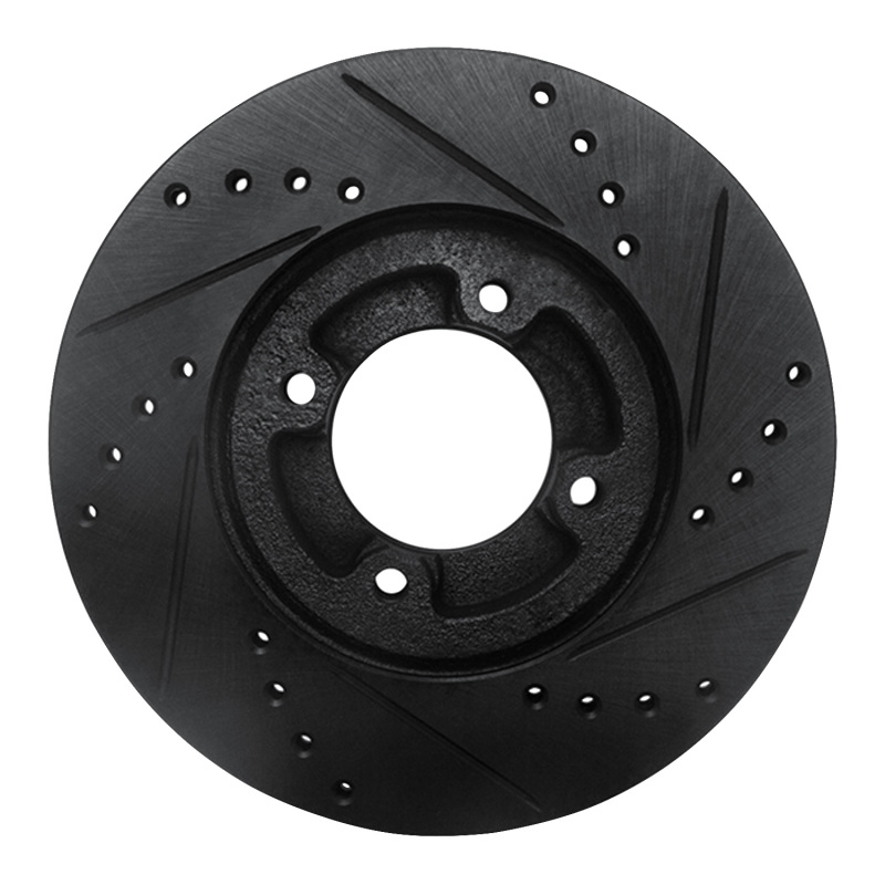 R1 86-89 Toyota Van Front Left Drilled & Slotted Black Brake Rotor